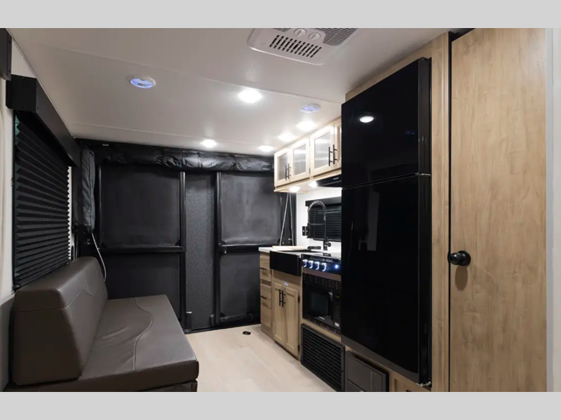 The Black Label brand differs from the standard Grey Wolf brand by including fiberglass gel coat sided walls, upgraded solid surface countertops, and upgraded reading lights. The exterior conveniences will make camping that much easier, and you'll fall in love with the cozy interiors.