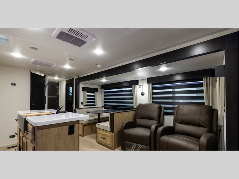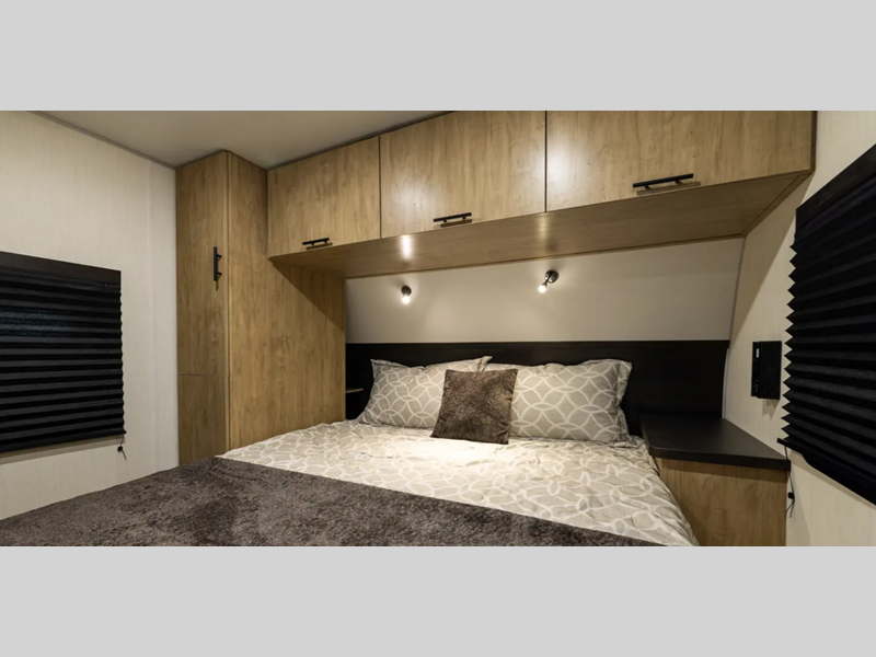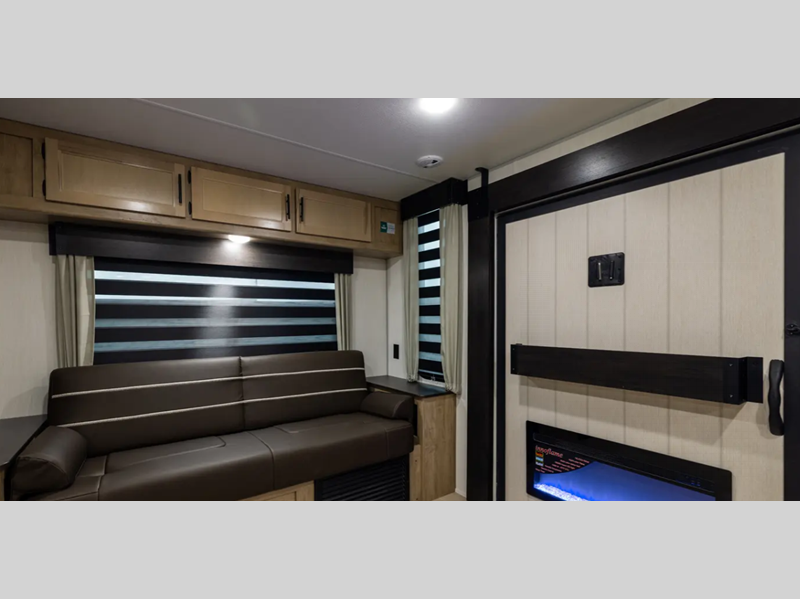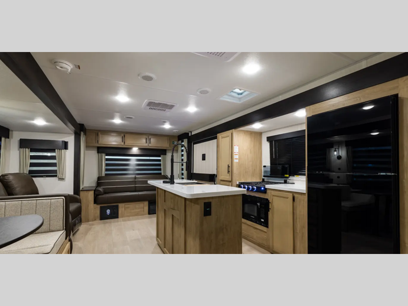 The Black Label differs from the standard Wolf Den, in that there are fiberglass gel coated fiberglass sided walls, frameless windows, and thermo-foil arctic insulation. You'll also enjoy solid surface countertops, upgraded reading lights, and designer cushion fabric! Each model features comfortable seating and sleeping spaces, full bath and kitchen amenities to make life at the campground easier than ever, plus plenty of storage space for personal belongings, camp gear and more!