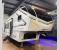 Comfort is just a step away in this fifth wheel with a large slide out. Here, you'll find the hidden pantry behind the pivoting entertainment door plus your kitchen appliances. The stainless steel sink will let you easily clean up, and the pivot dinette with two extra folding chairs provides versatile space to dine or work. Your crew can get comfortable on the L-shaped sofa after dinner, or head outdoors under the 18' power awning. A full bath lets you clean up after a day at the lake, and the front private bedroom with a king bed gives you your own space at night. There are also dual wardrobes and nightstands plus a wardrobe with washer and dryer prep for the option to go full-time!